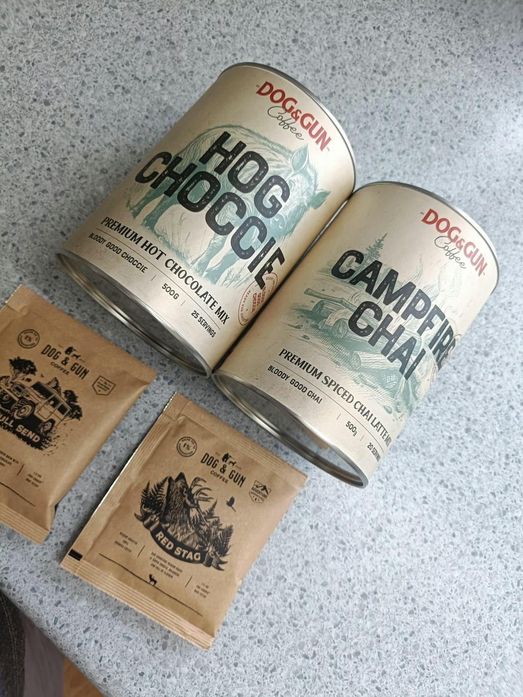 Our Spiced Chai Latte is a premium blend of cinnamon, ginger, cardamom, vanilla, and black fine tea powder—perfect for a cozy, indulgent treat by the campfire.